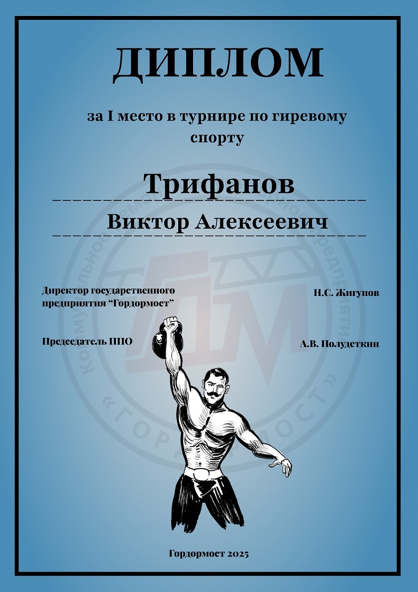 1 место – Трифанову В.А. 3 базовые величины; диплом